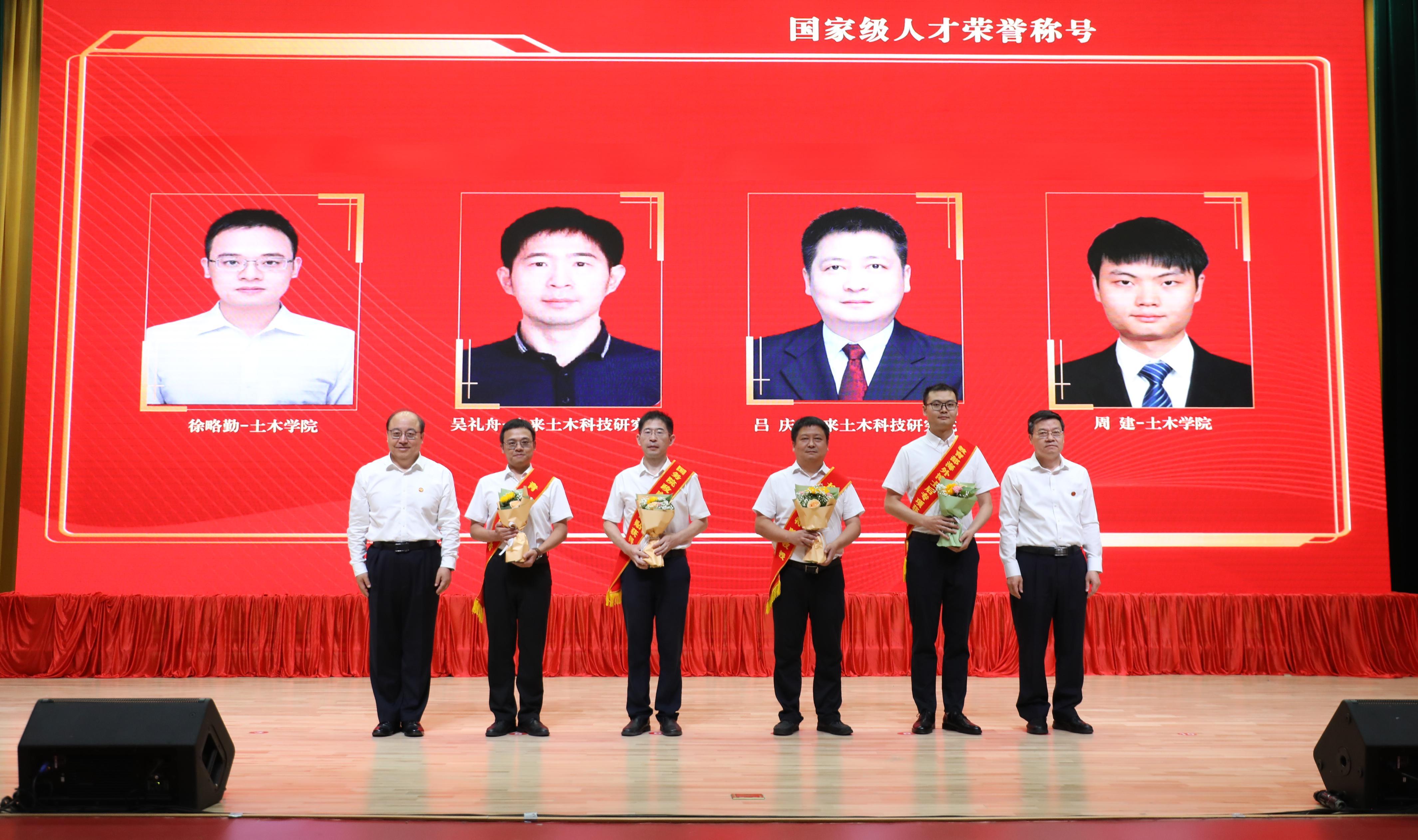 全国性奖励获奖代表表彰环节,学校党委书记宫辉,校长赖远明为获奖教师赠送鲜花并合影留念。