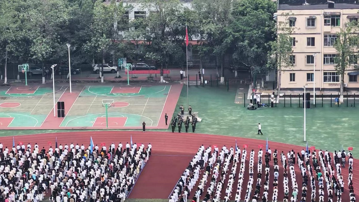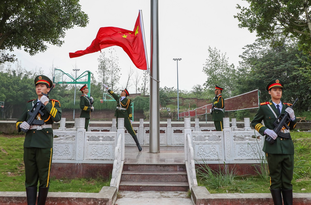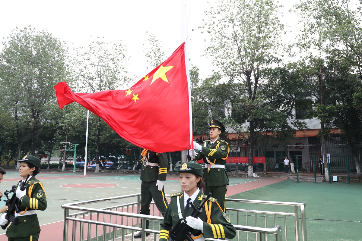 全体师生队列整齐、庄严肃穆,注视着国旗齐声合唱国歌,共同祝愿伟大祖国繁荣昌盛。