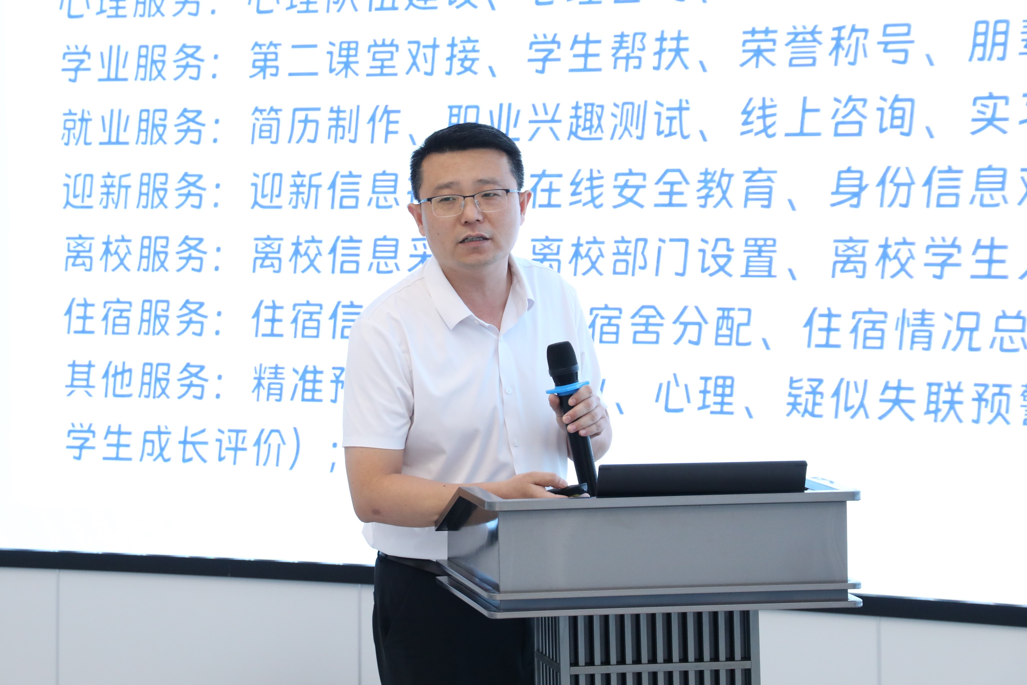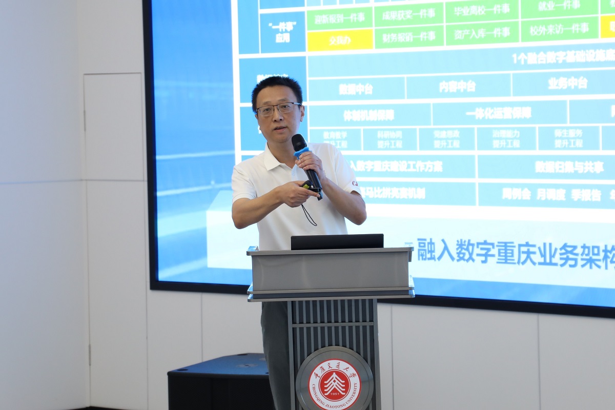 党委书记宫辉在讲话中强调,全校要深入学习贯彻习近平总书记关于网络强国的重要思想和数字中国的重要论述,认真落实全市数字教育建设工作会议精神,加快推进学校教育数字化转型升级。一是加快融入数字重庆建设。要聚焦学校职能职责和发展定位,全面系统梳理学校核心业务,努力实现核心业务数字化全覆盖;加强公共基础数据归集共享,扎实推动数智校园建设基本能力全面形成,充分发挥数据效能;深化应用贯通与实战运行,积极推动学校优质应用融入数字重庆建设三级治理体系,打造一批具有交大辨识度的贯通实战典型案例。二是创新谋划业务应用场景。要聚焦师生所盼、发展所需、未来所向,结合部门职能职责定位,不断丰富和完善应用场景,动态发现重大业务需求,推进存量应用迭代升级和谋划新开发应用,设计构建多跨融合应用场景,并推动相关应用在智慧教育中心落地,打造具有交大特色的AI+综合场景标志性成果。三是聚焦人才培养模式变革。要强化AI等新技术赋能教育教学,提升教师教学手段,升级教学资源库,开发新模板和指南,确保教学素材动态更新、教学流程优化;积极推动场景项目式教学,充分利用智慧教育中心资源库,将行业前沿成果融入课程设计;积极探索将人工智能等新技术广泛应用至课堂教学、资源建设、质量评价等场景,变革学校人才培养模式和创新教育教学方式,逐步构筑数字化个性化智能化教与学的新形态。