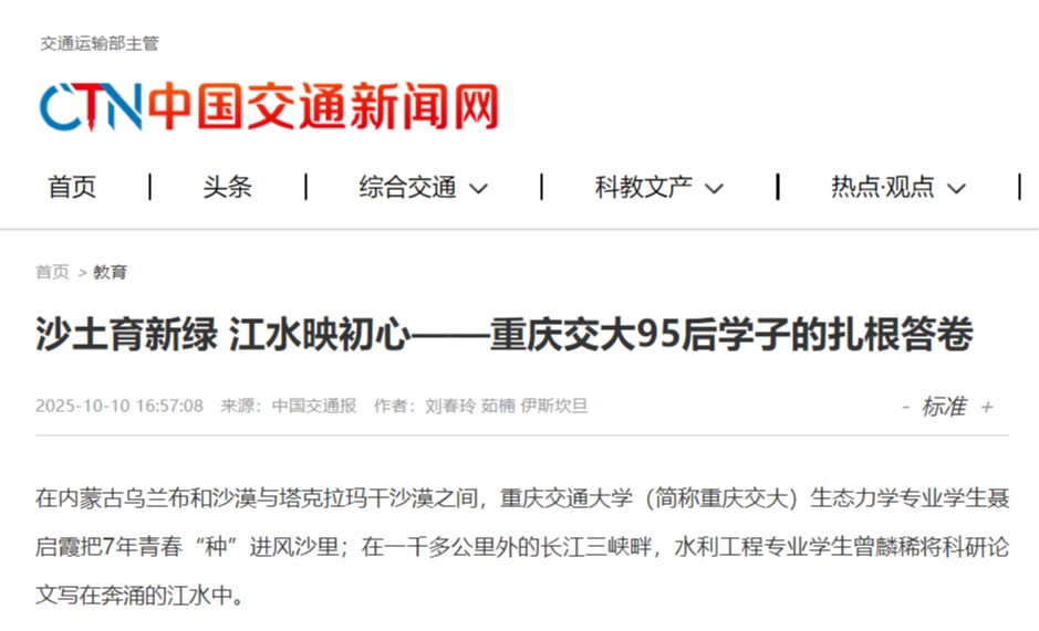 从沙漠到长江,从一粒沙到一滴水,重庆交大学子正在祖国最需要的地方,写下属于这个时代的答案。