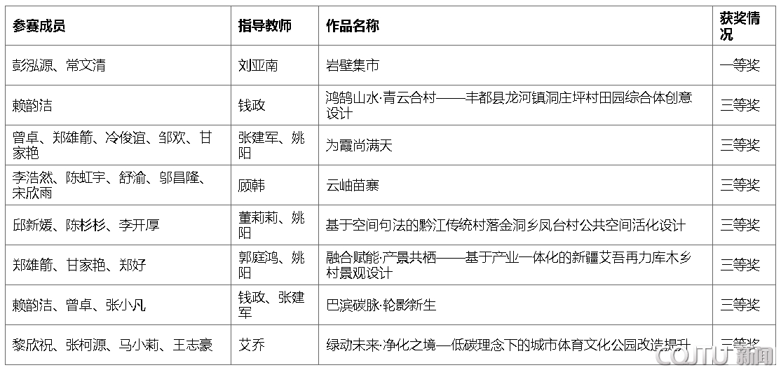 重庆交通大学第三届中国研究生“美丽中国”创新设计大赛获奖名单