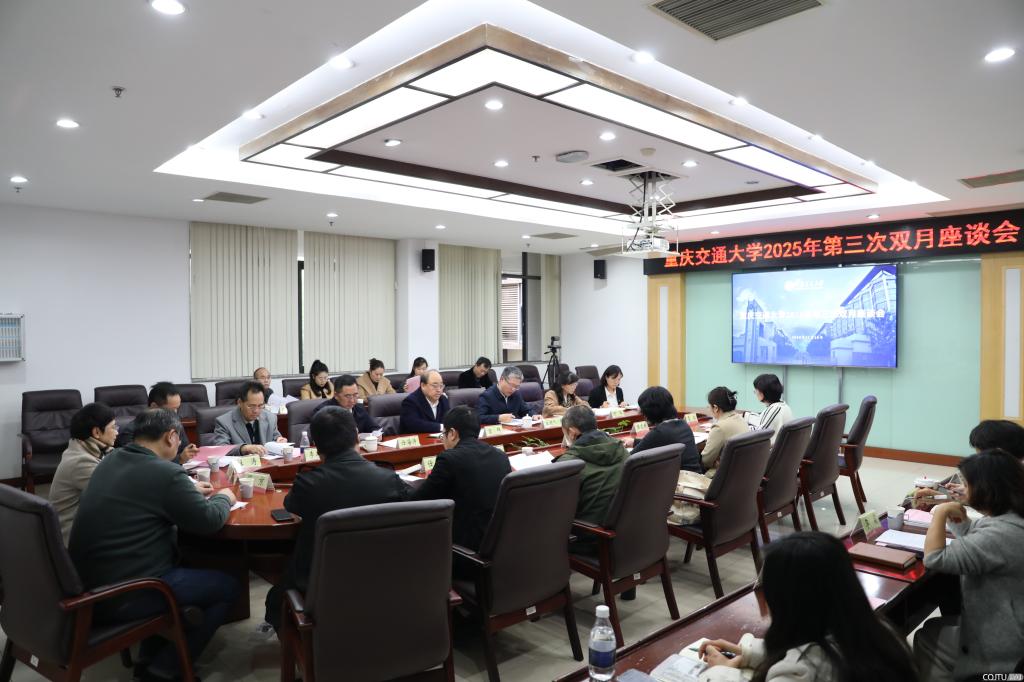 11月10日,重庆交通大学在南岸校区明德楼310会议室召开2025年第三次双月座谈会。党委书记宫辉,党委副书记张铭,党委常委、组织部部长、统战部部长任海涛出席会议,市、区人大代表、政协委员,各民主党派、统战团体负责人及成员代表30余人参加会议,会议由党委副书记张铭主持。