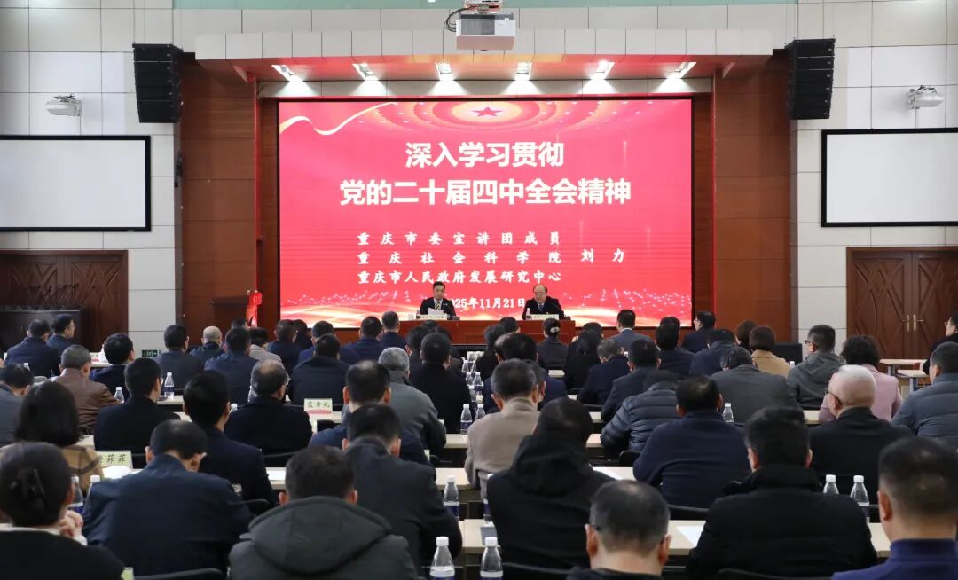 报告会上,刘晓吾紧紧围绕习近平总书记在党的二十届四中全会上的重要讲话和全会审议通过的《中共中央关于制定国民经济和社会发展第十五个五年规划的建议》,阐明了党的二十届四中全会的重大意义,介绍了“十四五”时期我国发展取得的重大成就,解读了“十五五”时期经济社会发展的指导方针和主要目标,分析了“十五五”时期经济社会发展的战略部署,并结合重庆实际,对全会精神作了全面系统、深入透彻的宣讲解读。