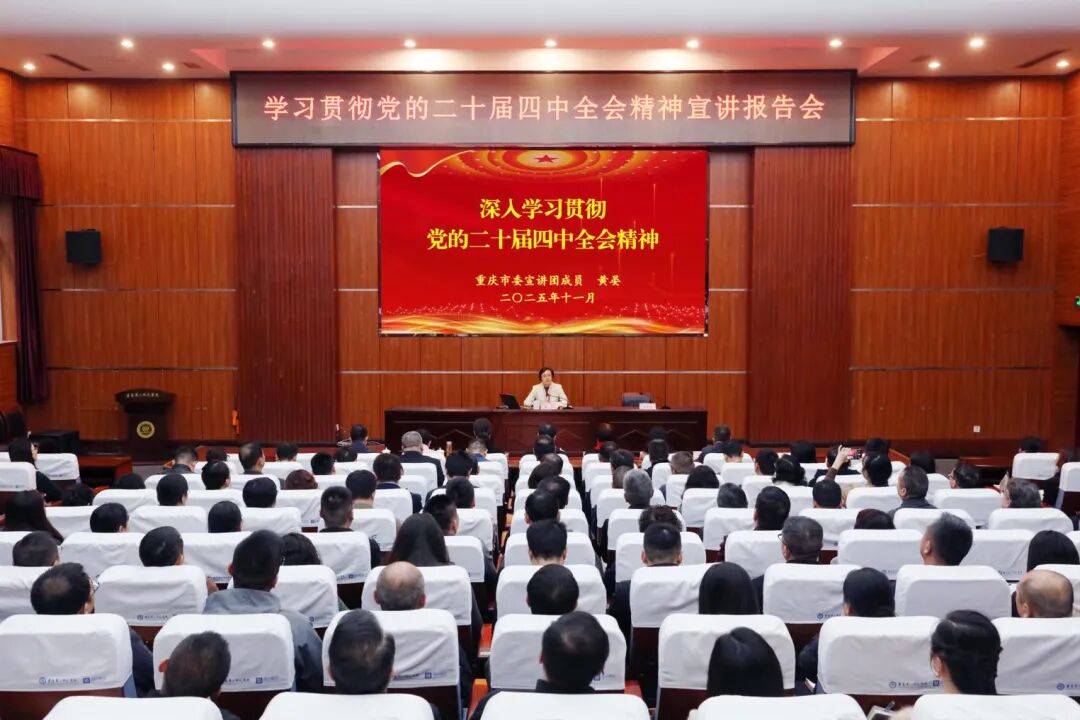 刘力结合习近平总书记在党的二十届四中全会上的重要讲话精神和《中共中央关于制定国民经济和社会发展第十五个五年规划的建议》,紧扣宣讲主题,从全会召开的重大意义,“十五五”时期在基本实现社会主义现代化进程中的重要地位,“十五五”发展的指导方针、主要目标、战略任务、重大举措,以及坚持和加强党的全面领导,对标对表推动四中全会精神在重庆一贯到底等方面作系统阐释。刘力强调,要锚定全会提出的各项目标任务,奋力开创“十五五”各项事业发展新局面,以实干实绩谱写中国式现代化重庆篇章,为确保基本实现社会主义现代化取得决定性进展作出重庆高校贡献。