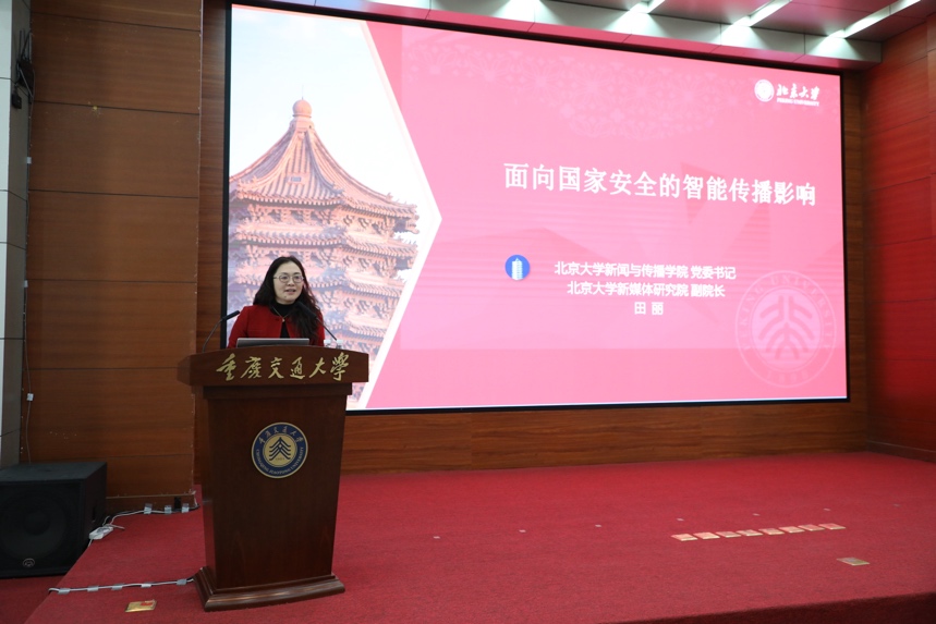 北京大学新闻与传播学院党委书记田丽教授做主题报告。学校供图第1眼TV-华龙网发