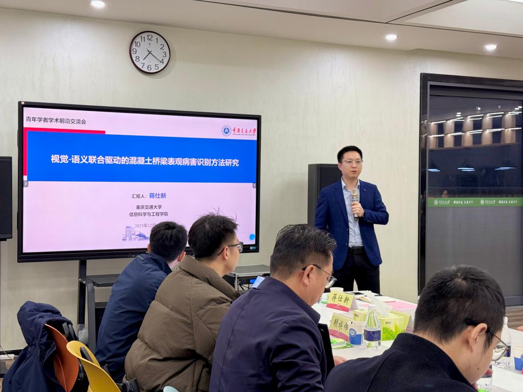 2025年12月3日上午,重庆交通大学第三十六期青年学者学术前沿交流会在南岸校区明德楼七楼2919会议室举行。市委第三巡视组副组长罗小松到会指导,校党委书记宫辉,党委常委、副校长罗均,党委常委、党政办主任杨既福,以及学校相关职能部门和信息学院负责人出席会议。