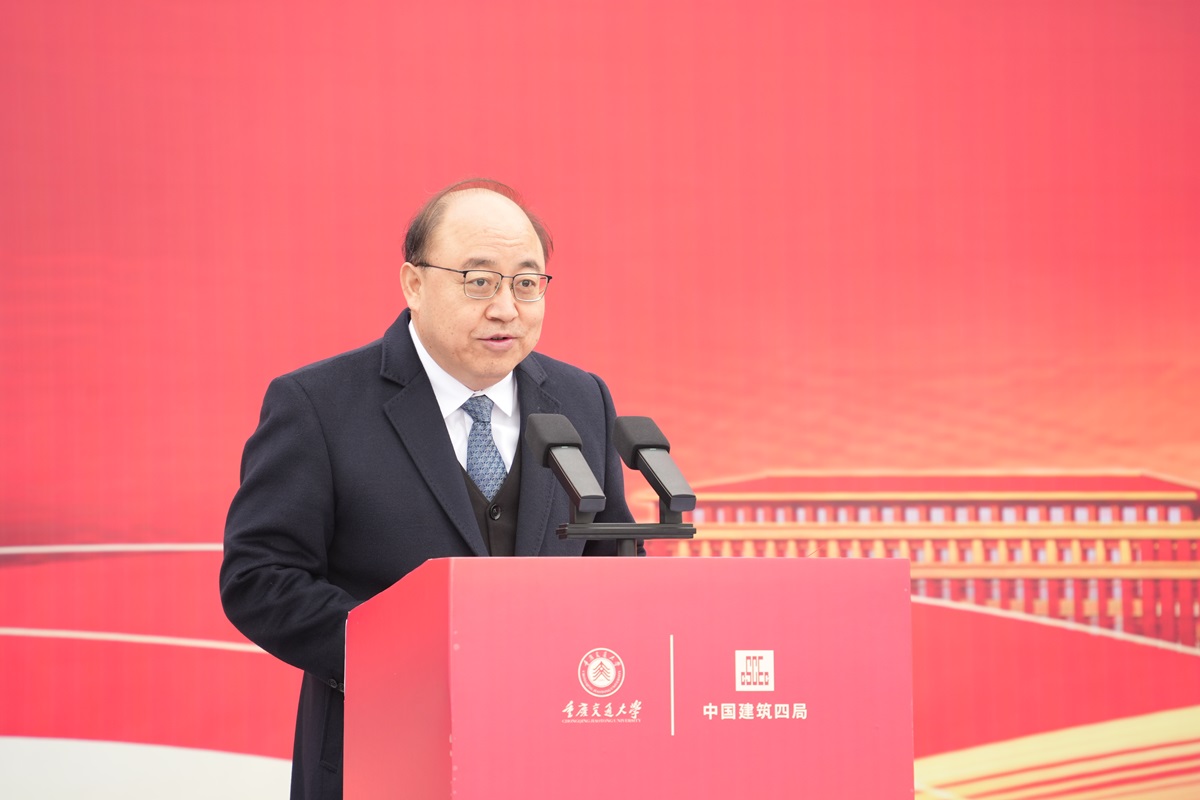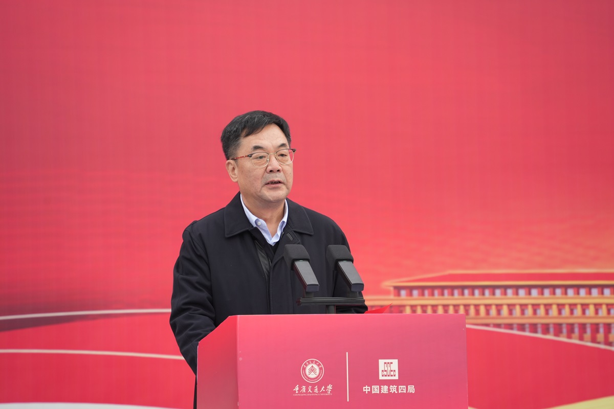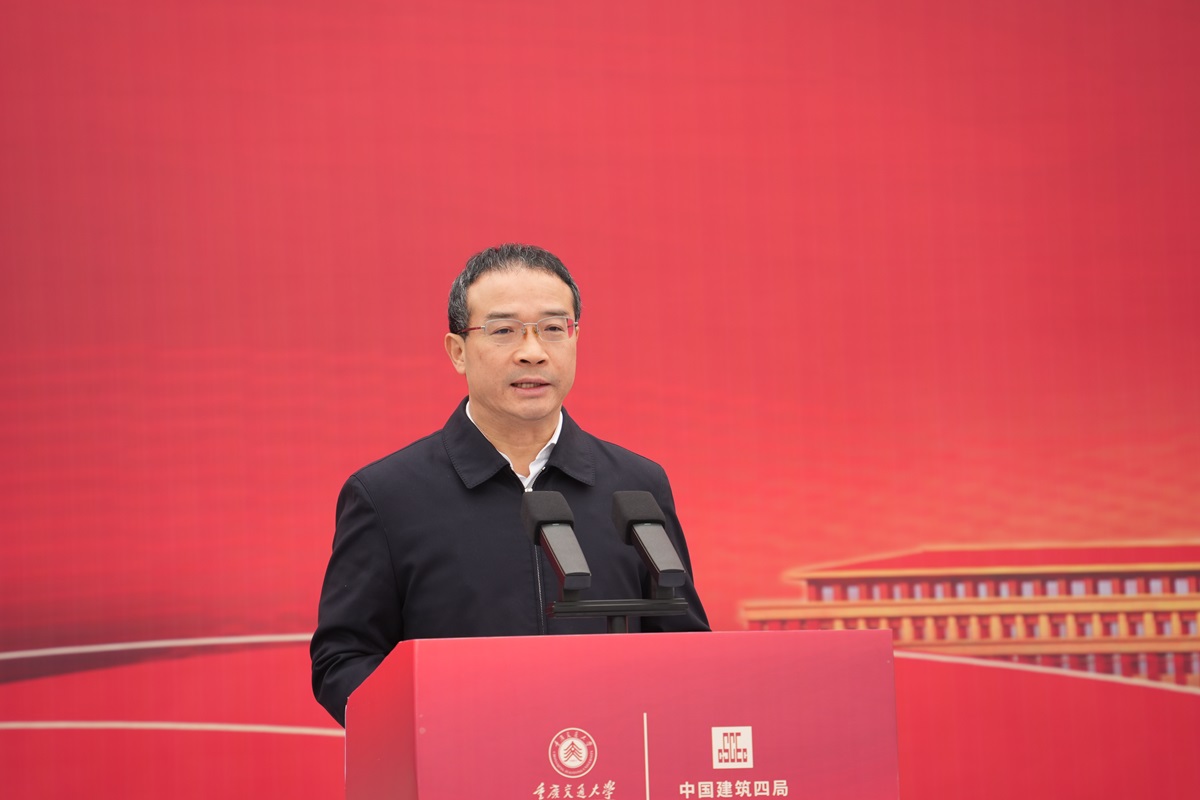 “这是一份交大人与历史对话的‘传承之约’,是一份交大人与时代同行的‘发展之约’,是一份交大人与未来相连的‘希望之约’,还是一份交大人与各方携手的‘共赢之约’!”重庆交通大学党委书记宫辉表示,开工奠基仪式不仅开启了一项工程的建设,更是关乎学校未来、教育使命和社会期待的美好约定,学校将以高度责任感和使命感,全力保障工程顺利推进。“我们坚信,与江津区深化校地协同,在平台共建、资源共享、人才共育中结出丰硕果实。与广大校友共筑“母校-校友”共同体,在产学研融合与社会服务中实现双向赋能。与参建单位精诚合作,携手将图情中心组团建设成为精品工程、样板工程、平安工程和廉洁工程。期待用汗水、智慧和情怀见证成长,争做彼此成就的同行者!”