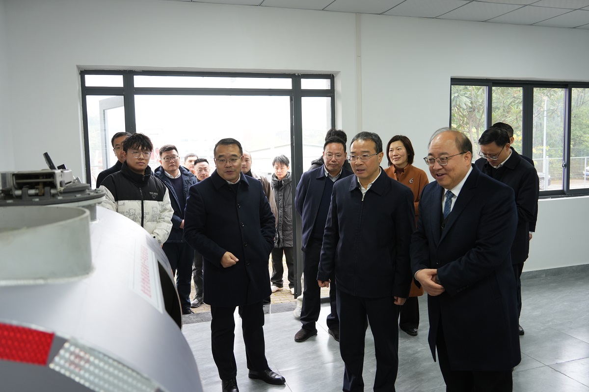 2025年12月16日上午,江津区区长赵光平一行应邀到访重庆交通大学科学城校区,专题调研位于校内的“未来小镇”前沿技术研发与集成创新平台。重庆交通大学党委书记宫辉,党委常委、党政办主任杨既福以及相关部门负责人陪同调研。