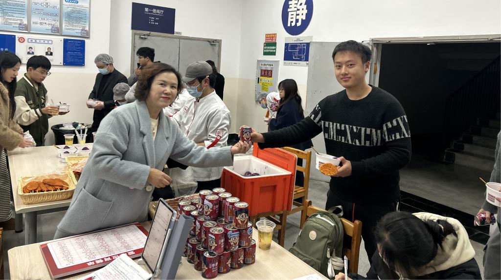“复习辛苦了,来份夜宵补充能量,愿你们努力拼搏,好运相随!”2025年12月的夜晚,重庆交通大学南岸校区与科学城校区较之往常增添了许多暖意与欢笑。