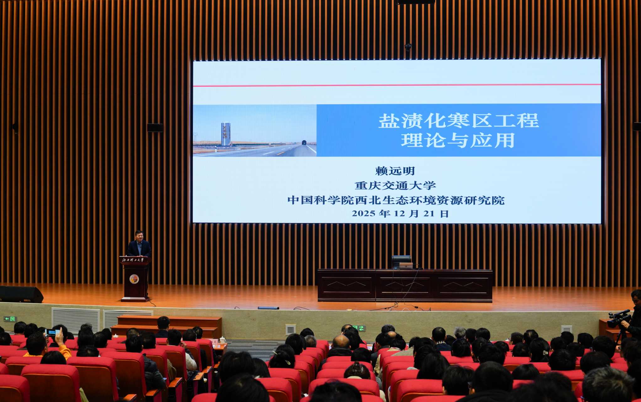 赖远明校长以《盐渍化寒区工程理论与应用》为题,在大会“清江学术论坛”上作学术研究报告,系统介绍了团队在相关领域的最新研究成果,分享了盐渍化寒区工程理论与技术应用方面的前沿进展,引发了与会学者的热烈讨论。
