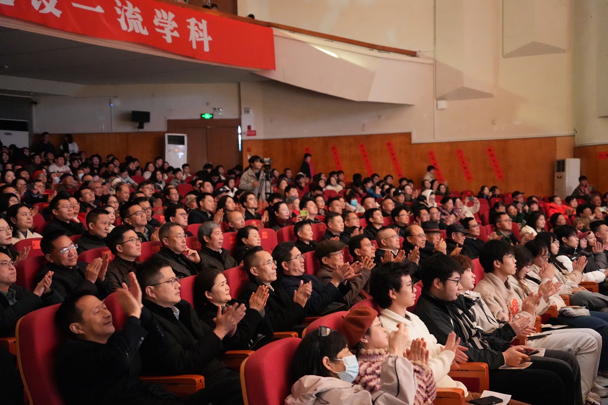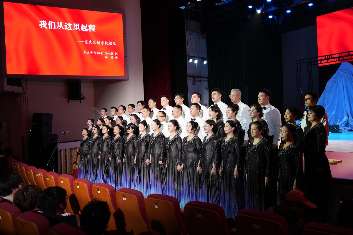 首演现场气氛热烈,市交通运输委、市文化旅游委、共青团重庆市委等部门及10余所兄弟院校领导,中国华西工程设计建设有限公司等企业代表,与学校离退休老同志、师生校友共同见证了这场精神盛宴。