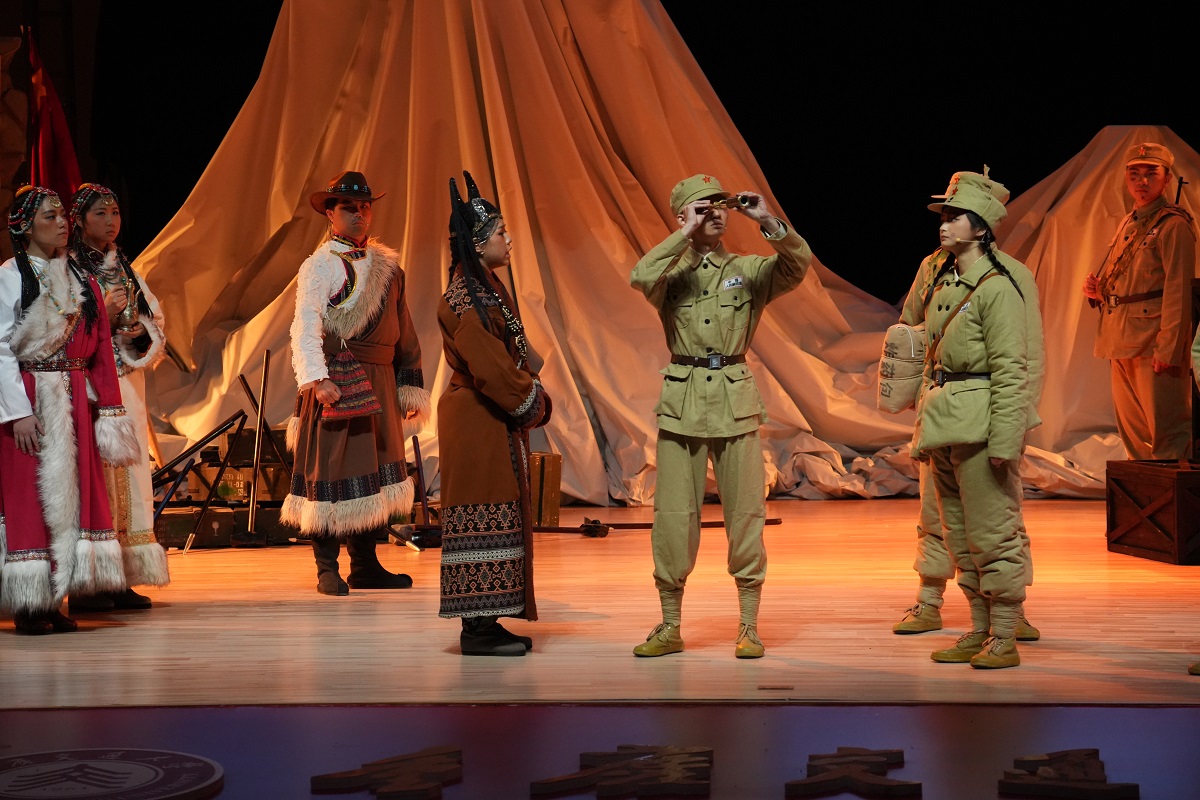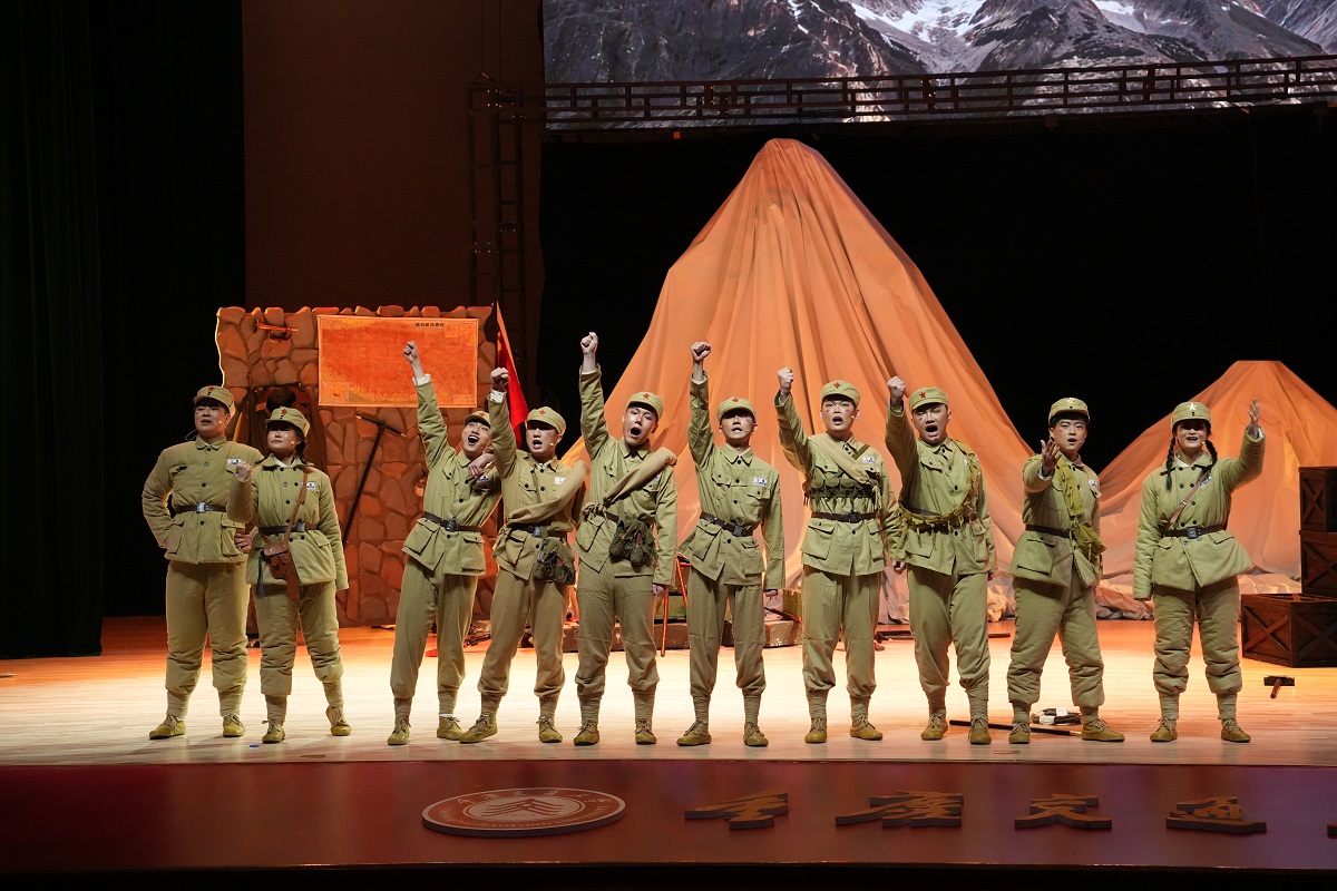 演出在全体演职人员与观众的校歌合唱声中落下帷幕。此次原创舞台剧演出前后,学校离退休老同志、老师代表等,还深情演唱了《歌唱二郎山》《两路》《我们从这里起程》《长江南岸七公里》等歌曲,歌声中饱含着几代人对川藏公路的深情凝望与精神守望,将现场氛围推向新的高潮。