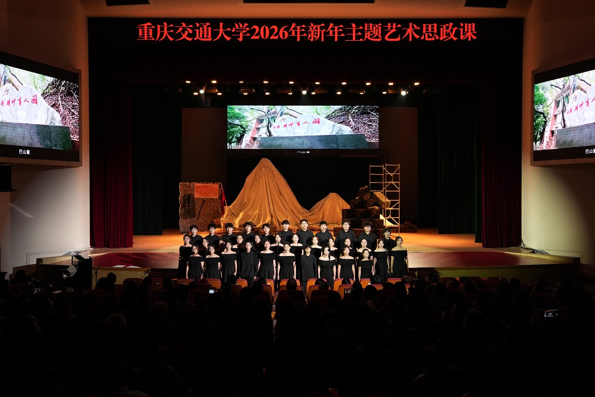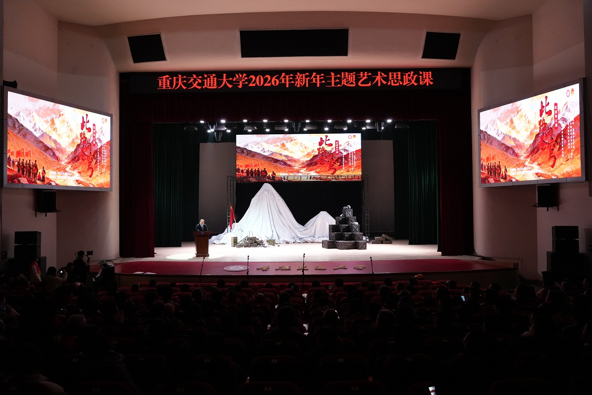 2025年12月28日,重庆交通大学南岸校区学术交流中心内座无虚席,我校首部大型原创舞台剧《此路向苍穹》作为2026年新年主题艺术思政课核心内容首演。这部剧以跨越时空的精神对话,生动诠释了“两路”精神在新时代的传承,通过舞蹈、音乐与戏剧的融合,将筑路人的奋斗史诗搬上舞台。该剧不仅是校庆75周年的献礼之作,更标志着我校在思政教育创新上迈出重要一步,为师生带来一堂直击心灵的艺术思政课。
