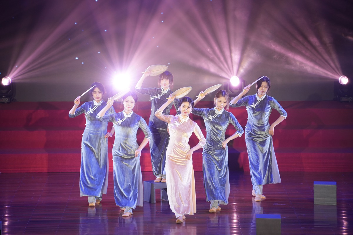 大学生艺术团带来校园歌曲串烧,《长江南岸七公里》《李子湖畔》《重交情天下行》的旋律勾起师生共同的校园记忆,现场情感共鸣不断。国际教育学院泰国学生表演舞蹈《泰chic》,节奏欢快、风格鲜明,呈现了校园文化交流的生动图景。
