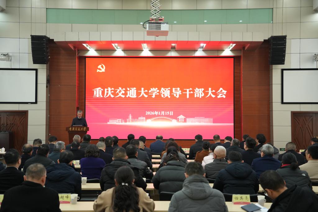 2026年1月15日下午,重庆交通大学组织召开全校领导干部大会,总结过去一年学校在学科建设、人才培养、科研创新等方面取得的成效,分析当前高等教育发展面临的新形势新挑战,进一步统一思想、凝聚共识,主动谋划寒假期间工作安排和“十五五”规划前期准备工作,为2026年发展蓄势赋能。