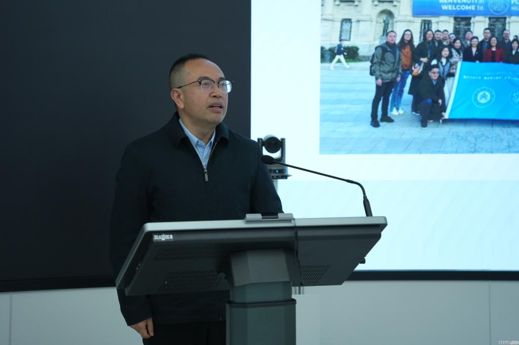 董绍江副校长以“数智校园建设路径思考”为题作报告,深刻剖析了当前学校数智校园建设面临的问题与挑战,分享了国内高校在数智校园建设方面的先进理念、成功模式和实践经验,并结合学校发展实际,清晰擘画了下一阶段数智校园建设的重点任务、实施路径和具体举措,为学校深入推进数智校园建设工作指明了方向、凝聚了共识。