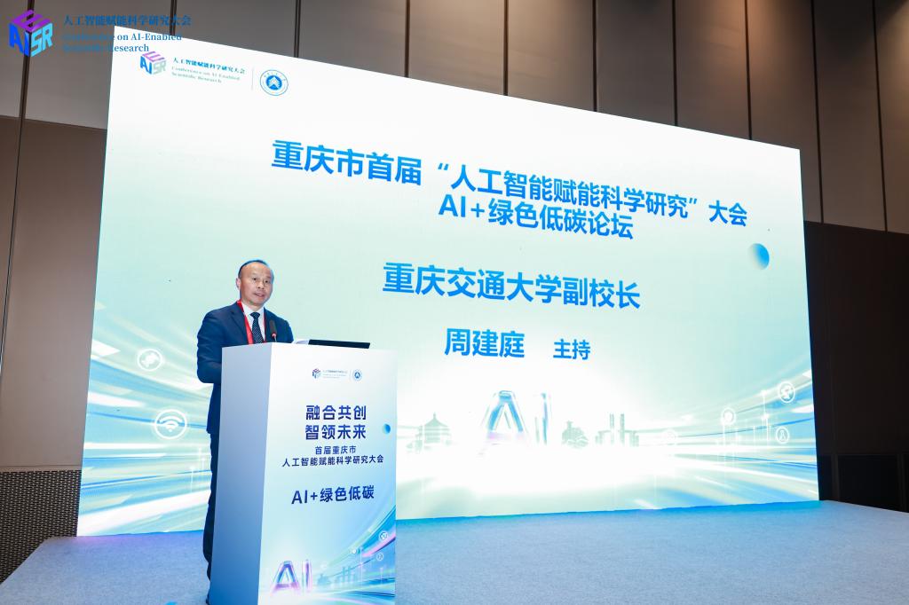 当日下午,由重庆交通大学承办的“AI+绿色低碳”论坛举行。论坛紧扣国家“双碳”战略目标,聚焦人工智能在交通基础设施低碳化升级、绿色建造、新材料研发、生态环境治理和城市空间智能等领域的前沿应用,旨在搭建跨学科、高水平的学术交流与协同创新平台。周建庭副校长和徐向阳处长分别主持论坛两个阶段。