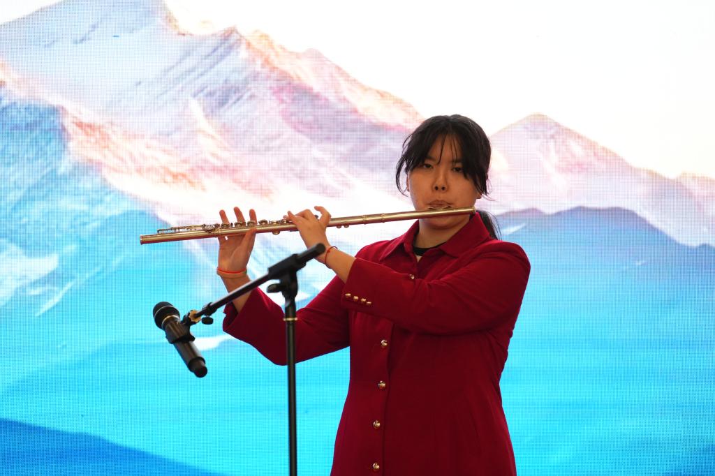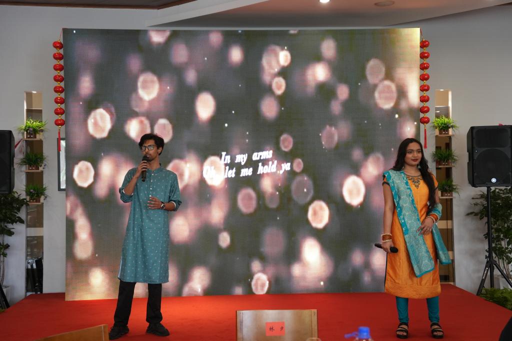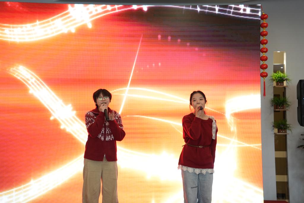 现场文艺节目精彩纷呈。歌曲独唱《当你老了》深情动人;器乐独奏《阳光灿烂照天山》旋律昂扬;歌曲对唱《Until I Found You》洋溢青春活力;由郑丹老师演唱、宫辉老师作词的歌曲《风中的亭—菁园胜景》表达对校园的真挚情感;对唱《恭喜发财》将现场气氛推向高潮。活动期间穿插开展多轮抽奖环节,现场掌声不断、喜气洋洋。