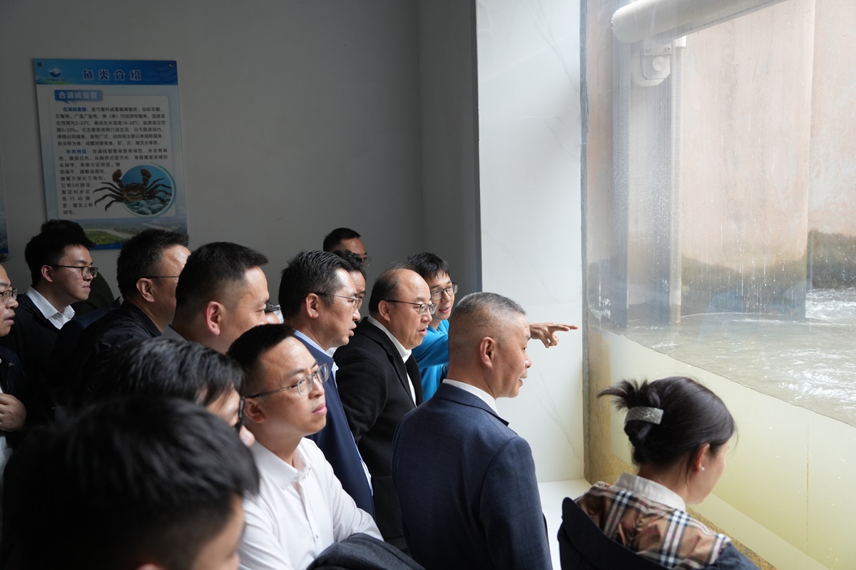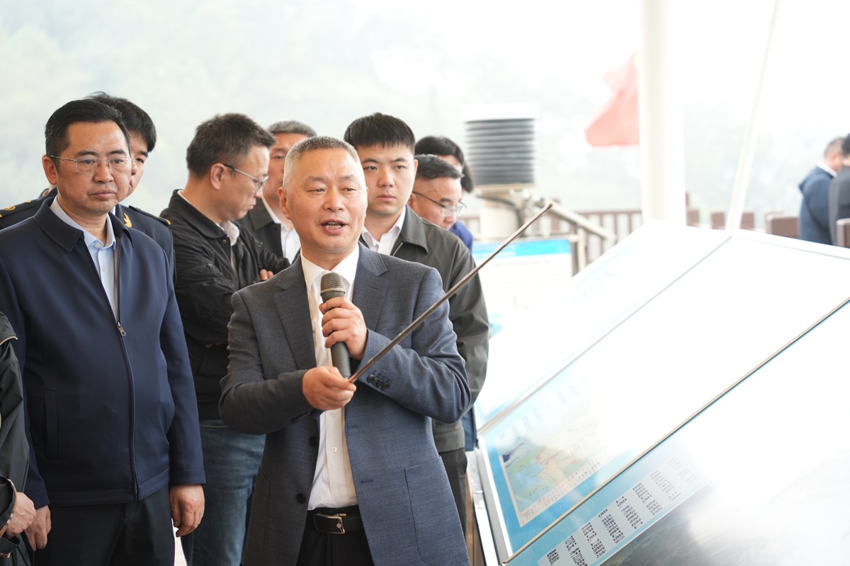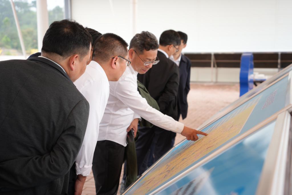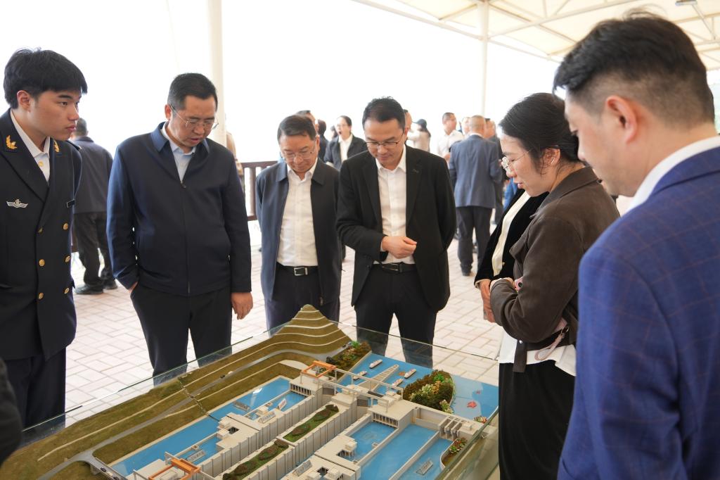 中心组一行还来到鱼道监测平台,重点查看了为流域水生生物专门设计修建的过鱼设施,详细了解鱼道的设计标准、功能布局、运行机制与实时监测系统。程耀飞结合现场监测数据与建设实景,深入介绍了平陆运河建设全过程秉持的“生态优先、绿色发展”理念,以及为保障水生生物洄游通道畅通、维护流域水生态系统完整性所采取的系列创新举措,让调研组对重大水运工程建设中的生态保护实践有了更为具象的理解。