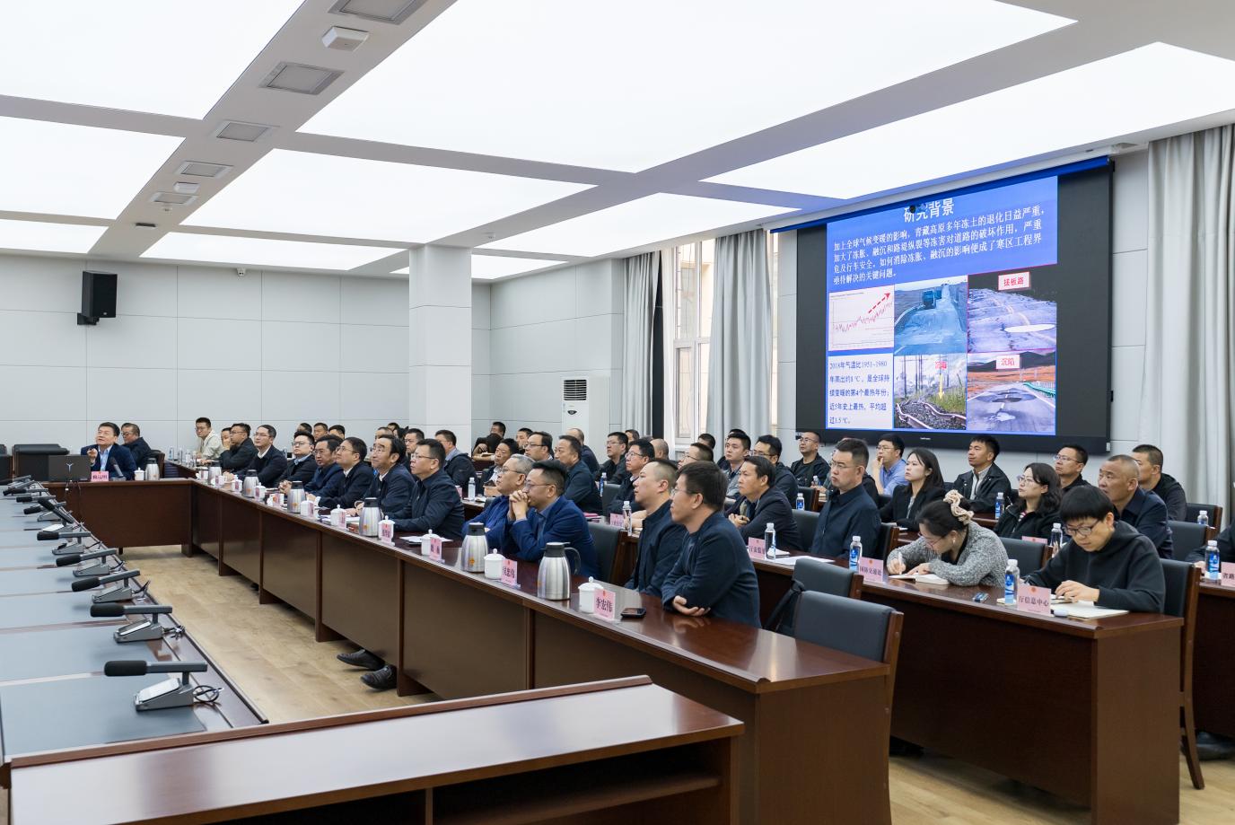 签约仪式结束后,赖远明校长以《寒区道路热学特性分析方法和冻害防治技术》为题,为青海省交通运输厅2026年第一期“交通科技大讲堂”作开篇首讲。讲座围绕气候变暖背景下我国冰冻圈国家重大工程安全建设和运营面临的挑战、关键防控技术及未来科技攻关的前沿方向,结合青藏公路、共玉高速等典型工程案例,深入浅出地阐释了寒区道路热学特性分析的前沿理论,系统介绍了冻土路基主动冷却、隔热层优化、排水系统抗冻等系列关键技术,并对未来智能化监测与预警体系提出前瞻思考。讲座引起了与会人员对寒区道路工程前沿理论浓厚兴趣,现场反响热烈。参会技术人员纷纷表示,赖院士的授课既有理论高度,又具实践深度,为青海公路冻害防治提供了可落地、可复用的技术路径。