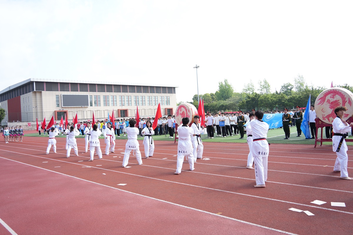 重庆交通大学跆拳道队、健美操队依次亮相,尽显青春昂扬的精神风貌。