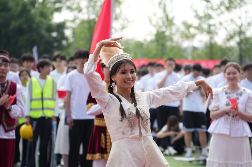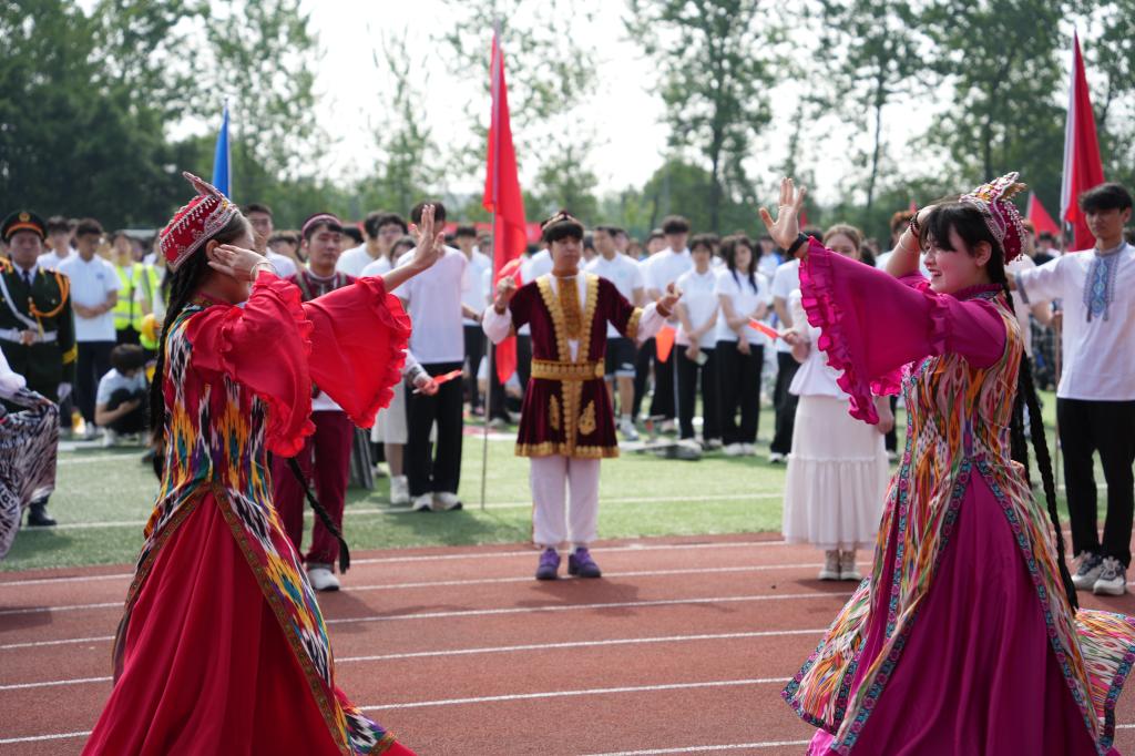 少数民族预科班团结方阵由维吾尔族、蒙古族等学生组成。同学们盛装出行,带来传统民族舞蹈表演,赢得观众阵阵欢呼。