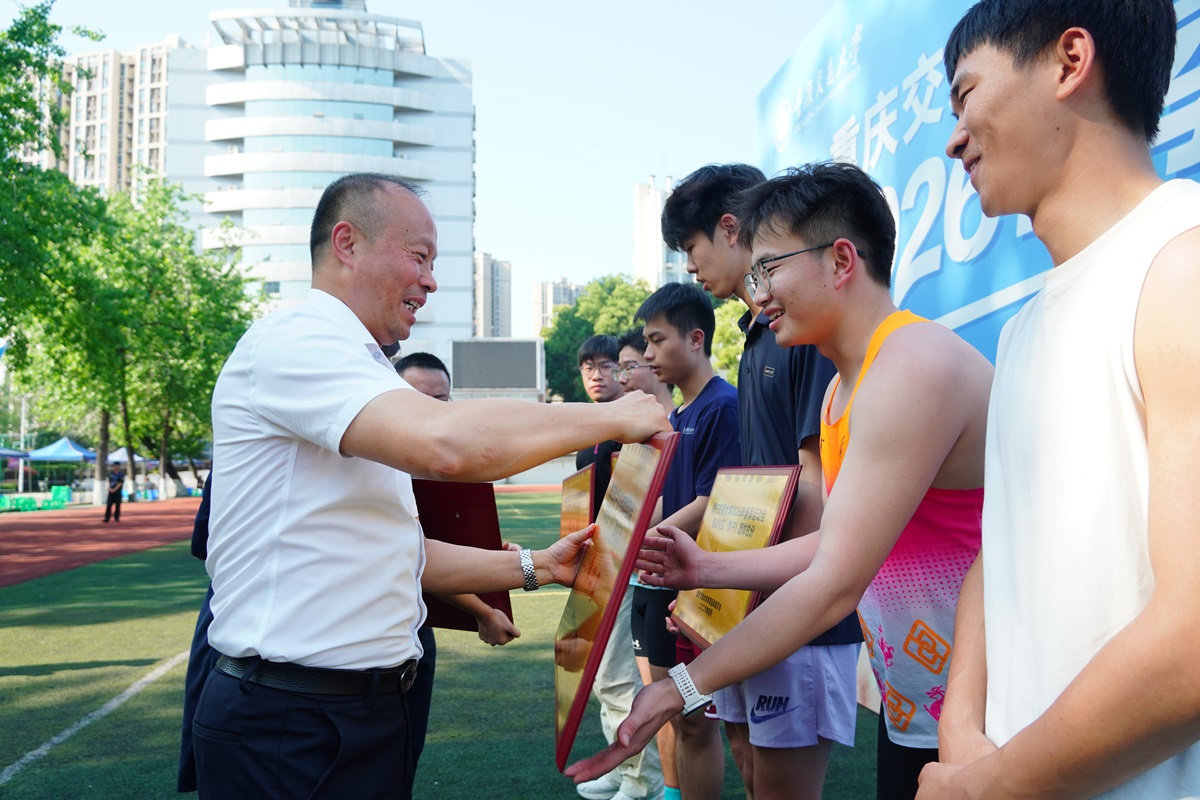 随后举行的颁奖仪式上,校领导依次为获奖学院代表队颁发荣誉证书和奖杯。获奖队伍代表们意气风发地走上领奖台,接过属于他们的荣耀,现场掌声雷动,为每一位在赛场上挥洒汗水、奋力拼搏的运动员喝彩。