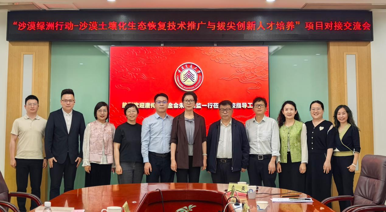 4月24日上午,沙漠绿洲行动—沙漠土壤化生态恢复技术推广与拔尖创新人才培养项目对接交流会在重庆交通大学明德楼310会议室顺利召开。唐仲英基金会项目总监朱莉、项目主管张小丽,西安交通大学教育基金会项目主管田玉粉,我校原副校长、沙漠土壤化技术带头人易志坚,生态环境研究中心主任、项目负责人马银华及项目核心团队成员参会。产学研合作处处长、教育发展基金会秘书长吴磊主持会议。