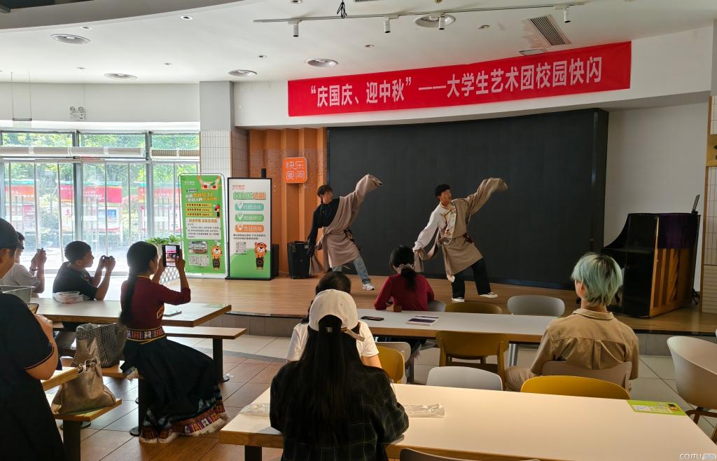 为庆祝中华人民共和国成立76周年华诞,喜迎中秋佳节,9月30日至10月1日,重庆交通大学大学生艺术团在科学城校区精心组织了两场别开生面的快闪活动。大学生艺术团学子们以青春之名,用精湛的艺术表演,深情传递对祖国的祝福和对阖家团圆的美好期盼。