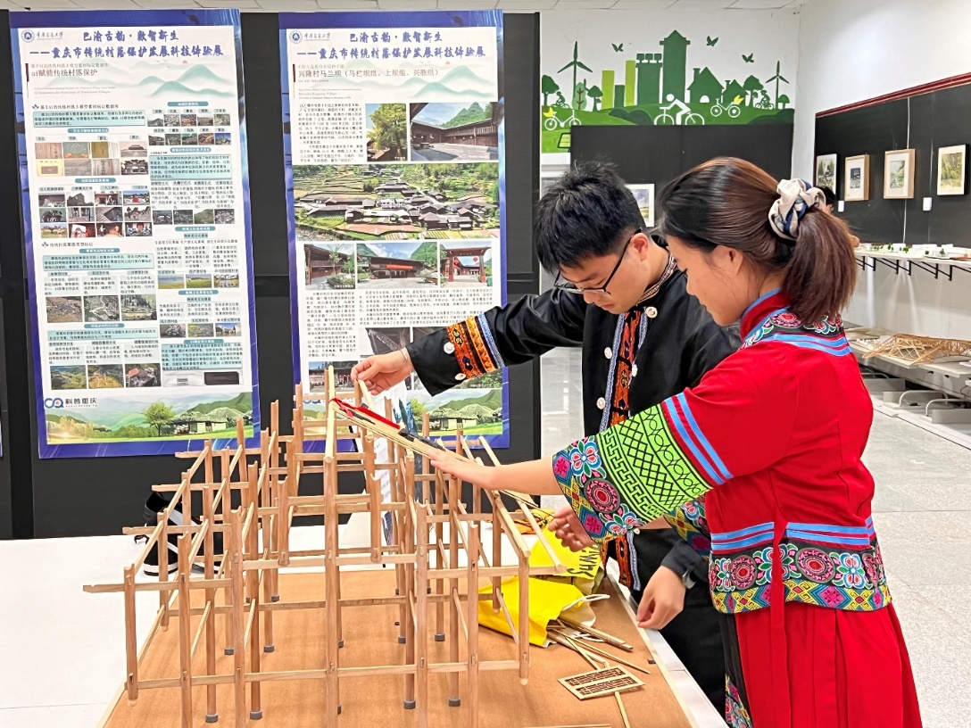 现场,不少参观者带上特制设备,通过三维建模技术“走进”重庆本地的百年古村落,清晰看到村落的布局结构、特色民居的榫卯工艺,甚至能“参与”到传统农具的使用场景中。“以前只在纪录片里见过古村落,这次通过科技手段,仿佛真的置身其中,还了解到很多保护古村落的新技术,太有意思了!”李同学兴奋地说。展览还设置了传统营造技术体验区,工作人员详细讲解了古村落建筑中的抗震、防潮智慧,让大家深刻感受到传统文化与现代科技结合的魅力。