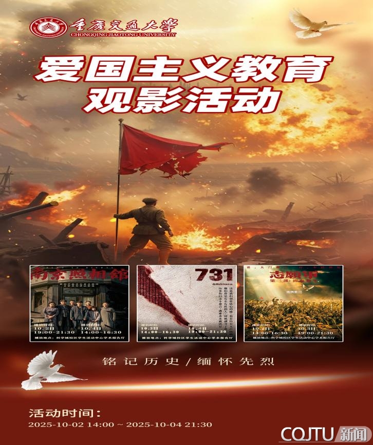 为纪念中国人民抗日战争暨世界反法西斯战争胜利80周年,进一步弘扬爱国主义精神,传承红色基因,近日,科学城学院在科学城校区学生活动中心学术报告厅开展了重庆交通大学2025年爱国主义教育观影活动。