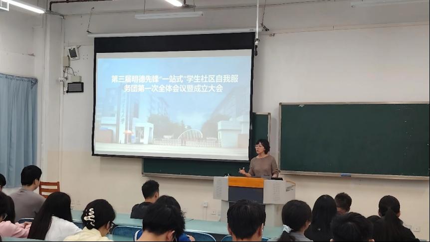 2025年10月13日中午,学工部组织召开第三届明德先锋“一站式”学生社区自我服务团成立大会暨第一次全体会议。学生工作部副部长金春寒,学生社区管理科全体人员及第三届明德先锋“一站式”学生社区自我服务团全体成员出席会议。
