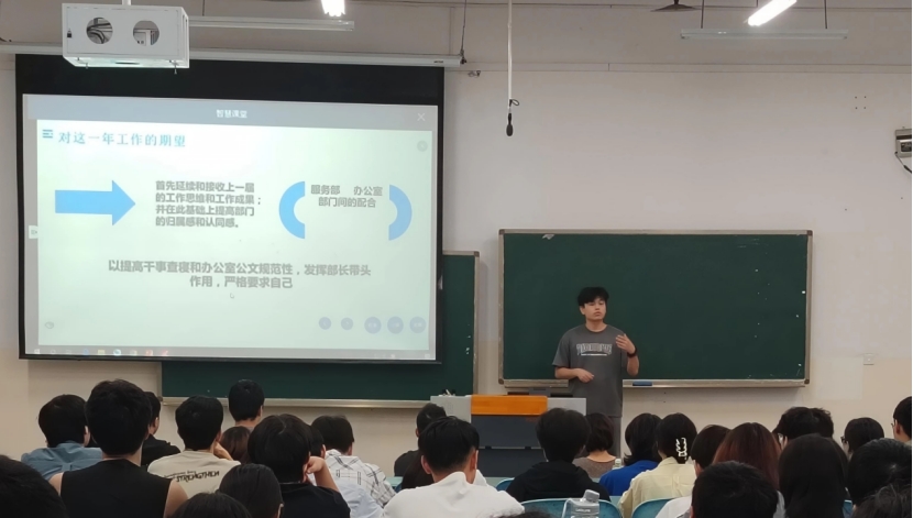 第二届服务团主席倪兵同学向学工部和服务团全体成员汇报了服务团2024-2025学年的工作概况和亮点成果,并向新一届服务团的成立表示祝贺和期待。