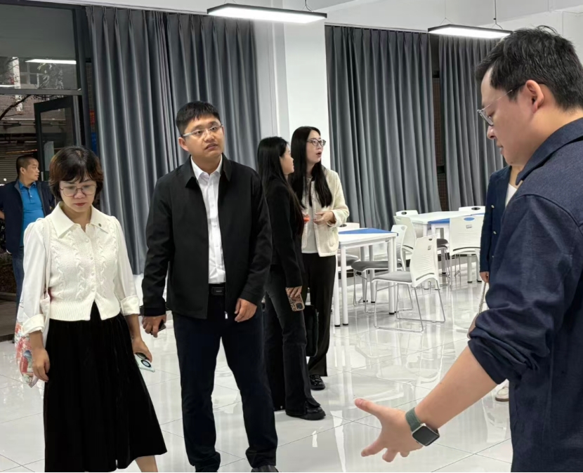 刘学奇一行实地参观了科学城校区德园社区内的“古井·2011”文化庭院、心理咨询中心、中华民族共同体建设实践基地、大学生“人工智能+”创新实践基地、洗阅空间、两路先锋“一站式”学生社区综合服务大厅等综合育人空间。双方随后在“一站式”学生社区综合服务大厅进行座谈交流。