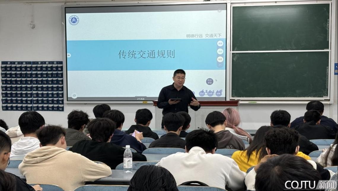 为进一步深化校选课《中国传统交通文化赏析》教学改革,丰富教学方式,优化教学内容,10月20日,课程组邀请了江津区公安局交通管制支队双福大队教导员李南飞警官走进课堂,李警官以专业知识结合真实案例,解读当代大学生易被忽视的交通规则,让同学们“足不出户”感知社会交通实况,助力其将传统交通文化中的秩序理念、安全意识与现代交通规范深度融合。