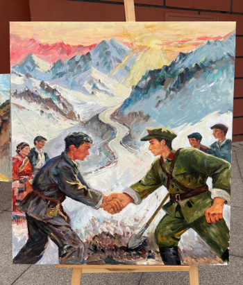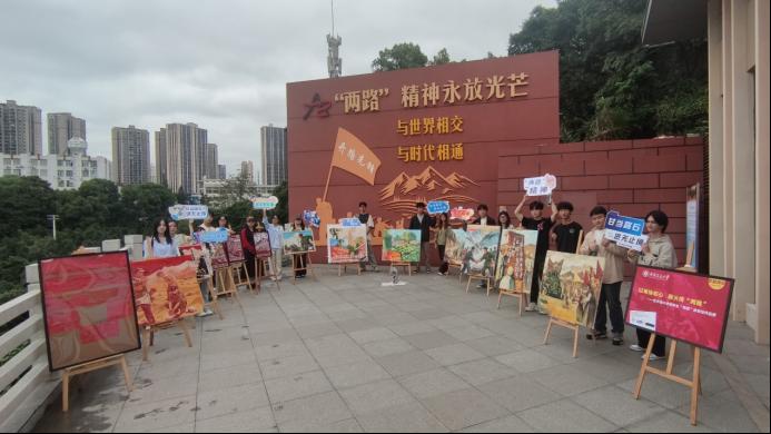 师生们移步室外观看艺术设计学院学生“两路”故事绘作品展。一幅幅色彩饱满、构思巧妙的画作,展现了同学们对“两路”精神的深刻理解与艺术化表达,体现出青年一代对光荣传统的敬意与创新传承。本次“两路”故事荟活动融合了厚重的历史底蕴与鲜活的时代气息,激励广大师生在新的征程上继续传承弘扬“两路”精神,不负韶华、勇担使命,共同绘就更加壮美的时代画卷。