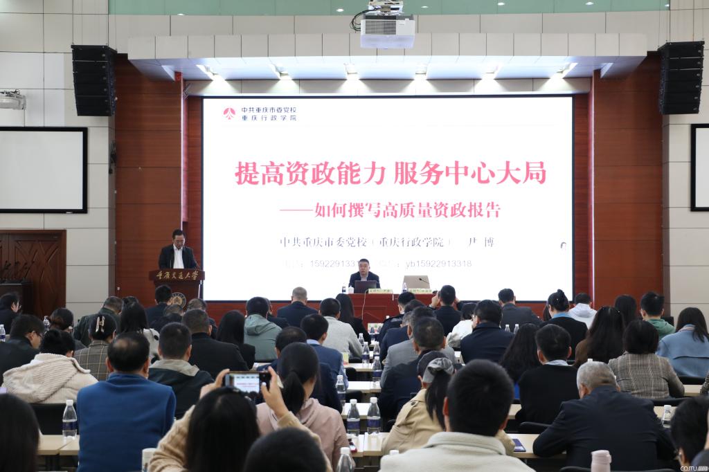 中共重庆市委党校(重庆行政学院)副校长(院长)尹博作了题为《提高资政能力服务中心大局》的专题辅导报告。尹博副校长首先从党和国家的需要、部门发展的需要、自我实现的需要三个维度,深刻阐述了新形势下提升资政能力的时代使命与核心价值。他紧密结合自身长期深耕调研和撰写资政报告的丰富实践,分享了宝贵的经验与洞见。尹校长通过一系列生动的典型案例,系统讲解了其总结提炼的“1564”法则,为学员们清晰地勾勒出写好高质量资政报告的“路线图”和“方法论”。他强调,写好资政报告关键在于“胸中有数、笔下有度”,要在扎实深入的调查研究中不断淬炼战略思维和综合研判能力,努力做到“汇聚发展正能量,唱响智慧好声音”。