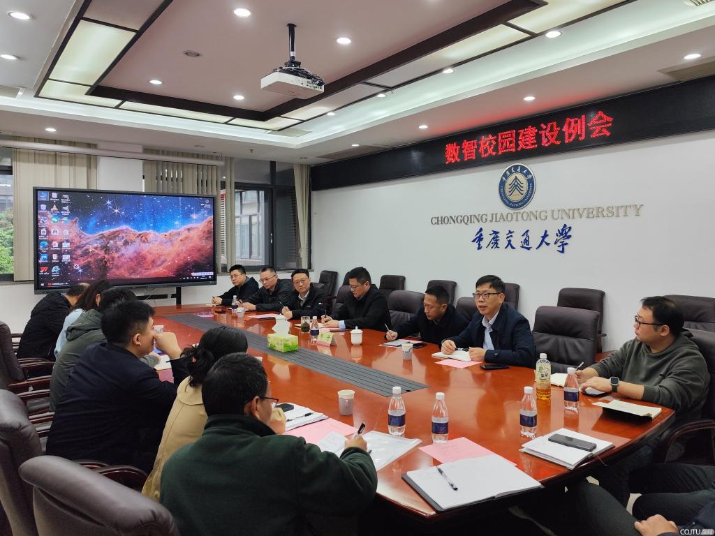 为加快推进教育数字化转型升级,11月5日上午,学校在南岸校区明德楼308会议室召开数智校园建设例会。重庆交通大学党委常委、副校长董绍江,副校长郑丹出席会议。信息化中心、教务处负责人及各科室负责人参加会议。会议由信息化中心主任张华主持。