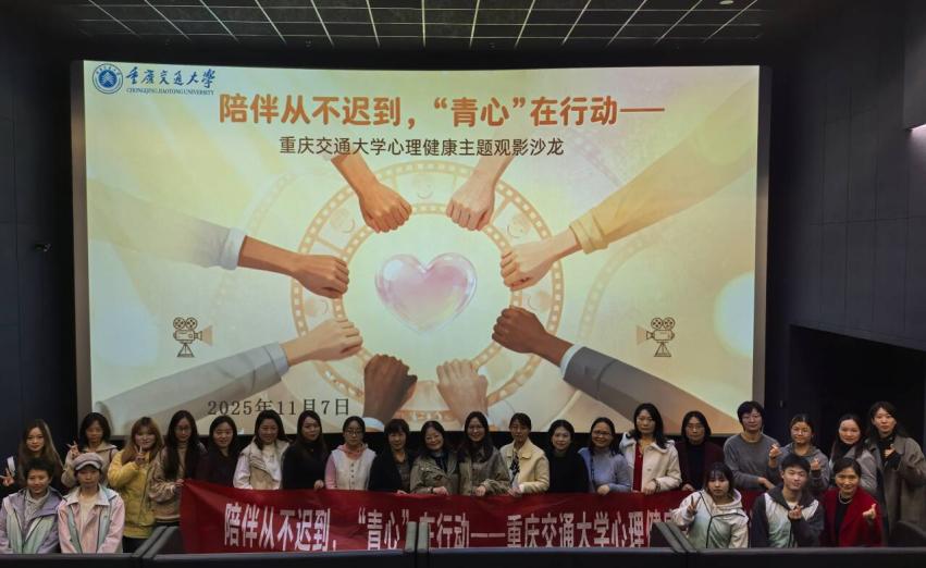 2025年11月7日,重庆交通大学学生心理咨询中心组织了一场“陪伴从不迟到,‘青心’在行动”主题观影研讨沙龙,献礼学校74周年校庆。近30名专兼职心理咨询师、辅导员和学生代表一起观看了我国首部心理健康主题纪录片《陪你到清晨》,一起直面青少年精神心理健康问题,并在片中展现的系统整合的医疗和帮扶叙事中,思考着“如何看”“如何帮”和“如何爱”的心灵议题,大家流着泪看完电影后,又以极大的热情参与了后半段的分组研讨。