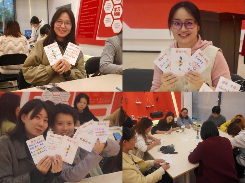 “如果·微光行动”环节将感动转化为具体行动。各小组围绕“被看见、被理解、被陪伴”展开头脑风暴,提出了设立“5分钟安心角”、创建“今天夸夸你”线上信箱等创新方案。“微光行动”套卡中的“用心倾听”“全心赋能”“智慧联结”等卡片,被各小组高频“使用”和“讨论”,现场气氛热烈。信息学院苏琴老师感言:“微光成炬,照亮他人,也照亮自己”土木学院聂贞羽同学分享:“作为学生代表参与此次活动深受触动,与各位老师的交流让我获益良多。看到心理健康话题得到如此重视,内心倍感温暖,期待未来有更多同学能参与其中。”