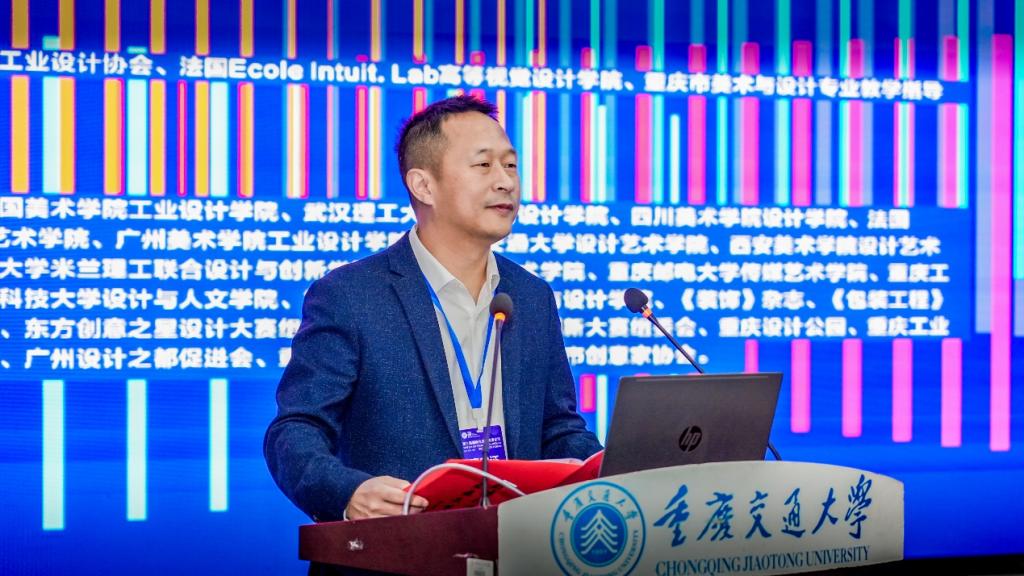 重庆大学艺术学院夏进军副院长介绍了艺工融合的设计创新案例。