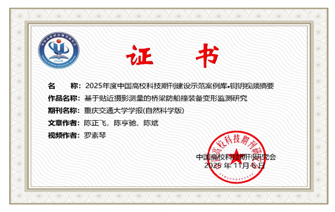 重庆交通大学期刊社将以此为契机,稳步提升期刊学术质量与影响力,持续助推学术交流合作、知识共享及成果应用,助力学校“双一流”建设。