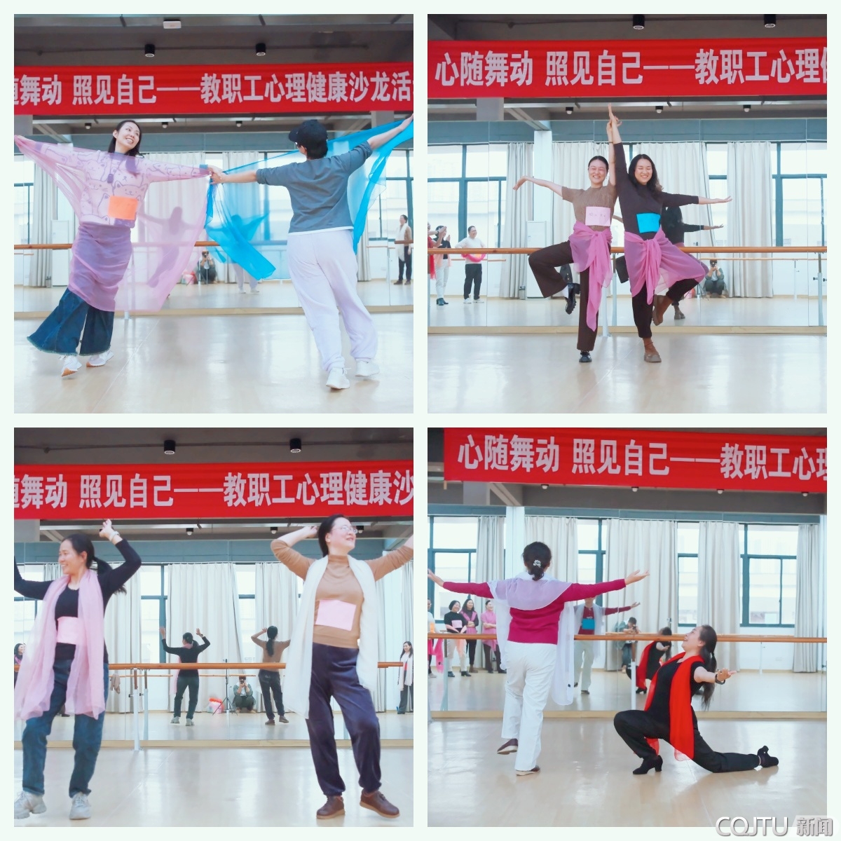 工作的忙碌与生活的琐碎,常让心灵蒙上疲惫的尘埃。2025年11月21日下午,校工会在南岸校区教职工健身中心舞蹈区举办“心随舞动 照见自己”心理健康沙龙活动,在重庆市精神卫生中心康复科护士长刘小林老师的带领下,教职工们开启了这场用舞动疗愈心灵的舒缓之旅。