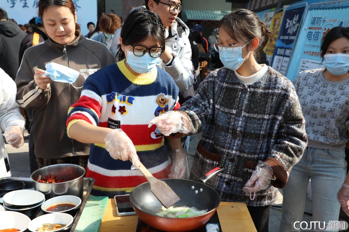 热气腾腾,香味四溢。11月21日中午,第三届“多元时光 厨动青春”主题学生厨艺大赛在重庆交通大学科学城校区德园食堂外火热开展。活动由学工部、科学城学院、后勤服务中心联合举办,旨在通过劳动实践弘扬中华美食文化,丰富校园文化生活。校党委常委、宣传部部长叶勇,科学城学院副院长王鹤,学工部副部长金春寒出席活动,与各学院学生代表共同见证这场美食比拼。