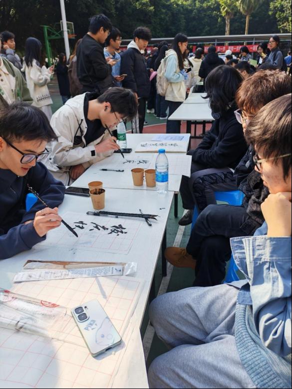 记忆互动区同样亮点纷呈,成为师生共忆校史、共寄祝福的重要载体。校史谜题环节围绕学校建校时间、标志性建筑、办学特色等核心知识点设置题目,在趣味答题中深化了对母校的认知;校庆祝福墙上,一张张彩色便签纸承载着师生对学校的真挚祝愿与美好期许,字里行间满含深情;书法体验角内,师生挥毫泼墨,“校庆快乐”、“爱我母校”、“明德行远”、“笃行致远”,师生们用传统笔墨传递出对母校的崇敬与热爱。