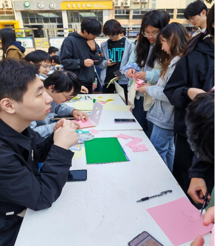 活动紧扣“校庆添彩,旧物焕新;时光留痕,文明共享” 核心主旨,精心设置 “变废为宝创意区” 与 “记忆互动区” 两大板块,实现环保实践与校庆主题深度融合。在创意区,师生们巧用废纸、塑料瓶、旧衣物等废旧材料,精心打造出收纳盒、校庆主题挂饰、校园风景拼贴画等系列作品,每件作品均清晰标注材料来源与创作理念,既展现了扎实的动手能力,更传递了循环利用的环保理念。11 月 21 日下午开放的互动制作台人气鼎盛,志愿者现场指导参与者用旧纸箱拼接校徽、用瓶盖拼组 “校庆” 字样,沉浸式的手作体验让师生在实践中感受创造乐趣,成品可自行留存作纪念,兼具观赏性与纪念意义。
