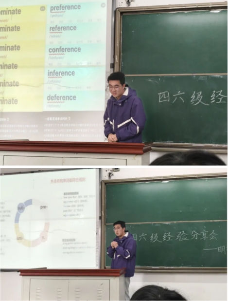 分享环节邀请了两位在英语学习与应试方面经验丰富的学生代表,从备考方法到实战技巧进行了系统讲解。