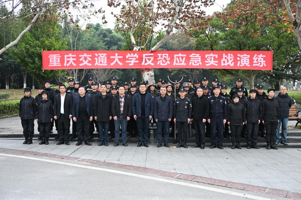 为提升重庆交通大学防暴应急的快速反应、高效处置及应对能力,强化校地联动,筑牢校园安全防护屏障,12月10日下午,学校联合江津区公安局特警支队在科学城校区南门组织开展了反恐应急实战演练。保卫处处长黄廷强,科学城学院、安保公司负责人及相关同志、“路石”先锋队学生代表等到现场观摩。科学城学院副院长王鹤主持演练。