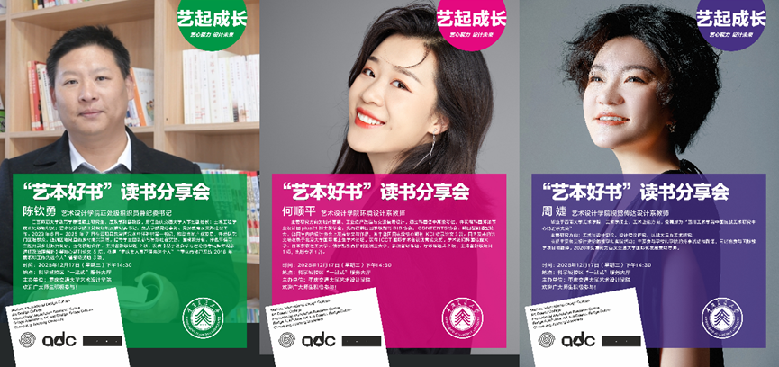 12月17日下午,艺术设计学院第三期“艺本好书”读书分享会在科学城校区德园“一站式”服务大厅温情启幕。本次活动以“共话阅读力量,共探成长智慧”为主题,邀请学院正处级组织员兼纪委书记陈钦勇、环境设计系教师何顺平、视觉传达设计系教师周婕担任分享嘉宾,学院党委书记朱静,学工办主任王辉与众多学子齐聚一堂,共赴这场书香之约。分享会由学院党委副书记黄亚凝主持。