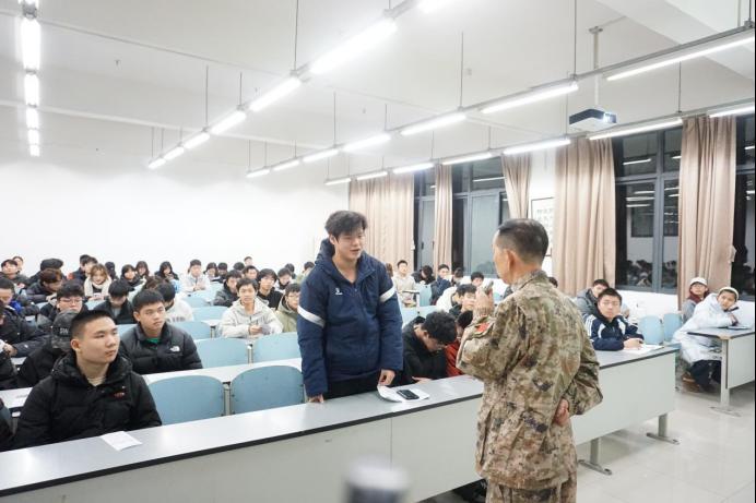 答疑解惑环节将宣讲会的氛围推向高潮。钱老师与退伍学生代表针对同学们提出的入伍体检标准、兵种选择、军营适应等问题,逐一进行耐心细致的解答,消除了同学们的疑虑和困惑。现场互动频繁,气氛热烈,同学们参军报国的热情持续高涨。